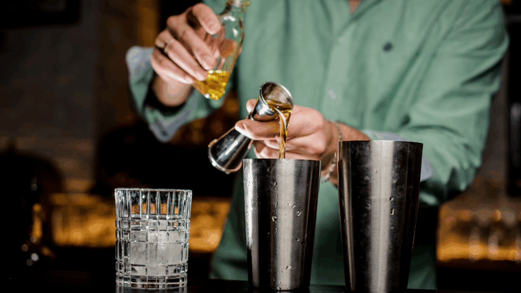 Spiritueux, jus frais, sirops maison, bitters artisanaux, herbes aromatiques… chaque élément compte pour créer un résultat précis et élégant. - La maîtrise du geste